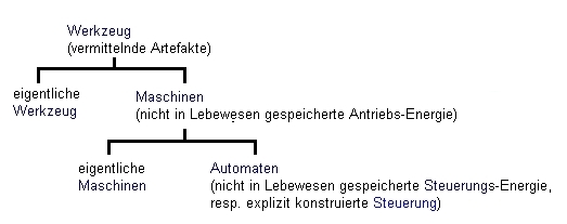 Eigentliche (primitive, unentwickelte) Werkzeuge (zB. Hammer und Sichel) verlangen vom Benutzer Kraft und Steuerung, was in der Entwicklung der Werkzeuge aufgehoben wird.