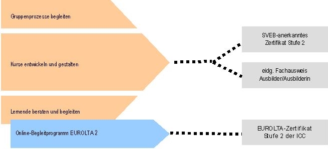 Die Zertifizierungs-BedingungenDas Modul «Gruppenprozesse begleiten» entspricht der von der Schweizerischen Vereinigung für Erwachsenenbildung SVEB definierten und durch die Schweizerische Modulzentrale Modula genehmigten Modulbeschreibung. (www.modula.ch) Ziele, Inhalte, Umfang, Lernmethoden und Lernzielkontrollen werden alle zwei Jahre überprüft und an die aktuellen SVEB-Richtlinien angepasst. |