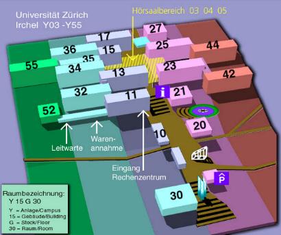 Der Kurs findet an der Universität Zürich Irchel, Winterthurerstrasse 190, 8057 Zürich, statt: am 1./4./5. Kurstag im Raum 10 G 03 (oberhalb des Studentenladens, vgl. Irchel-Gebäudeplan), am 2./3. Kurstag im Computer-raum 10 E 25 (Untergeschoss des gleichen Gebäudes).